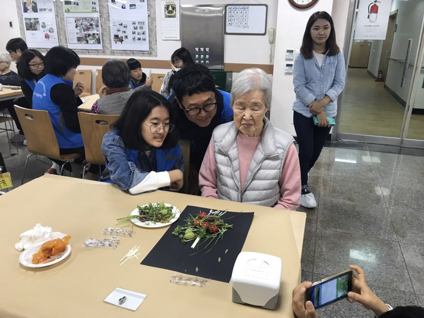 다양한 과일과 식재료를 활용해서 멋진 작품을 만드는 활동으로 어르신들에게는 푸드테라피가 매우 신선한 활동이었습니다.