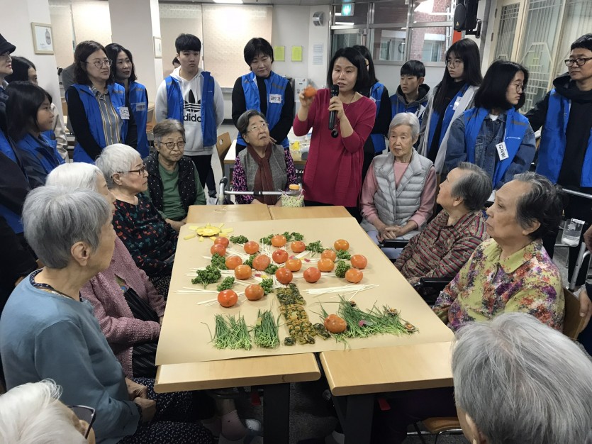 10월 14일(토) 어르신들께서 용산구다문화·건강가정지원센터 동그라미가족봉사단 연계한 푸드테라피 활동을 진행하였습니다.