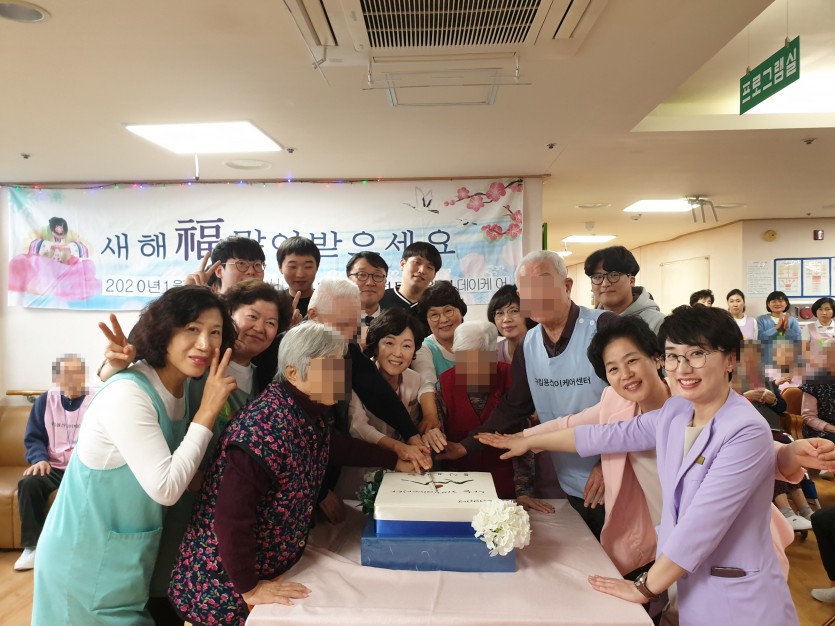 어르신들과  한자리에 모여서 새해를 축하하는 시간을 마련하였으며,
